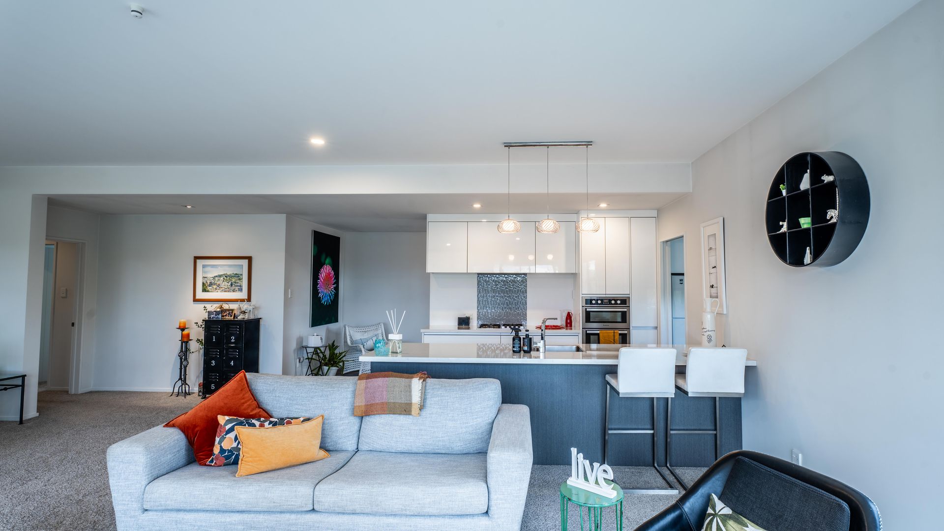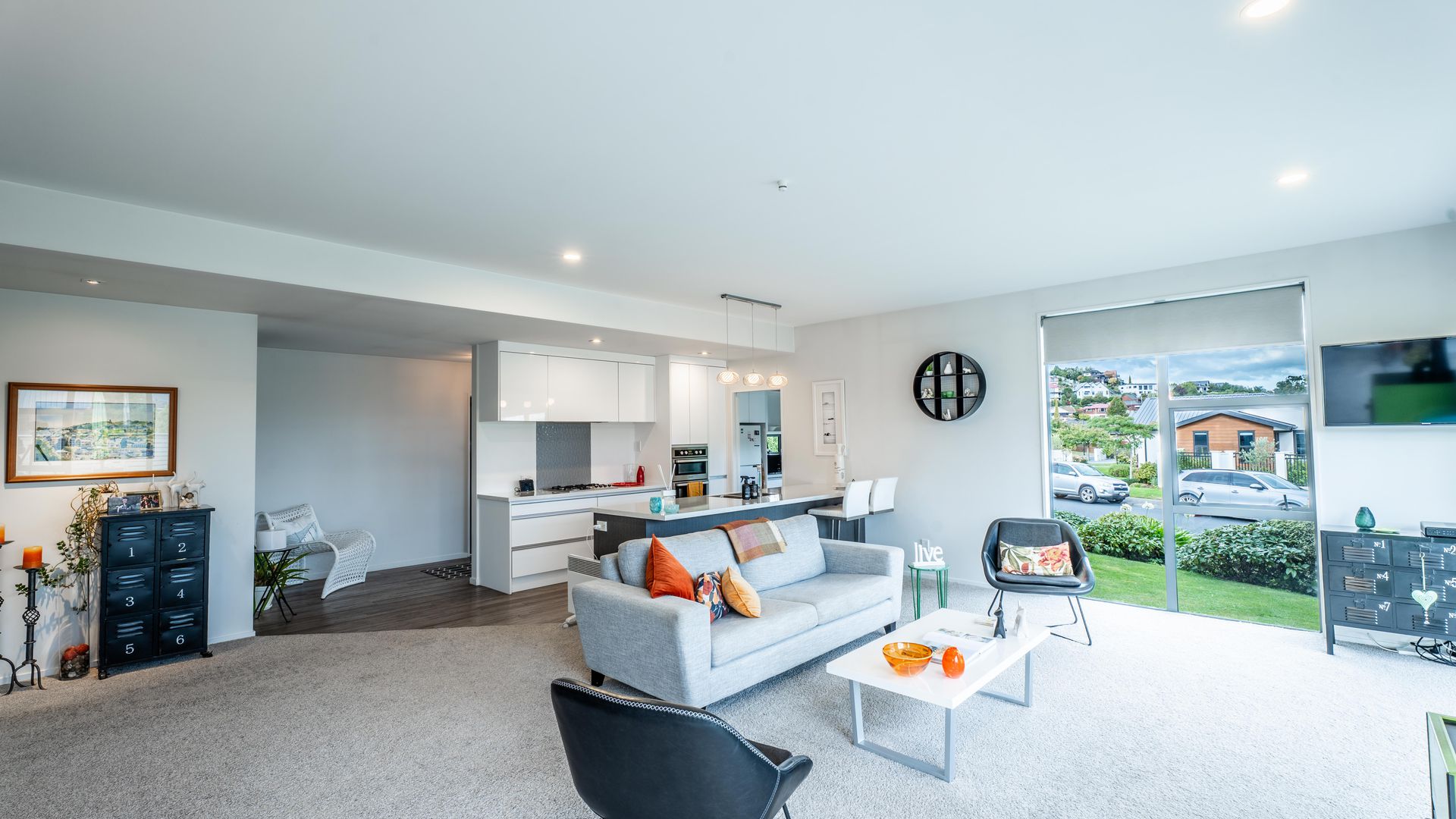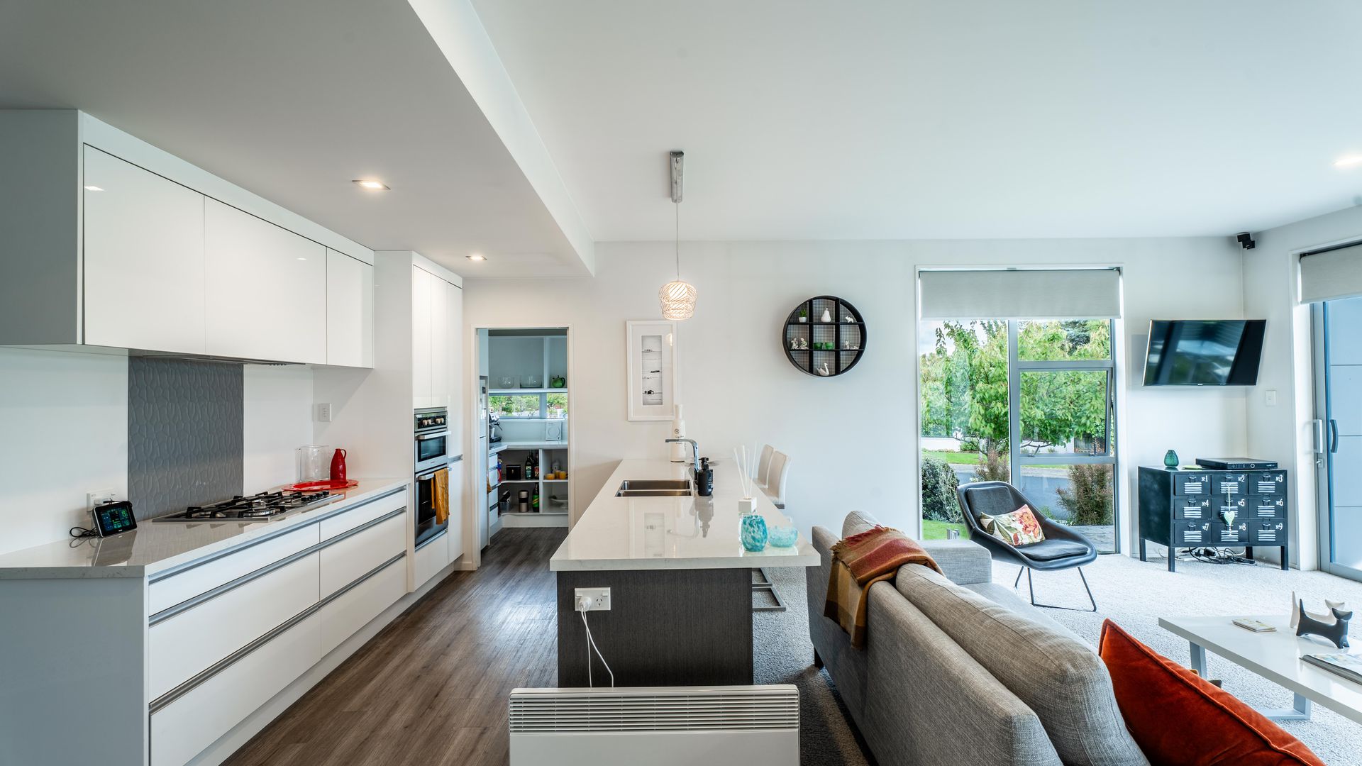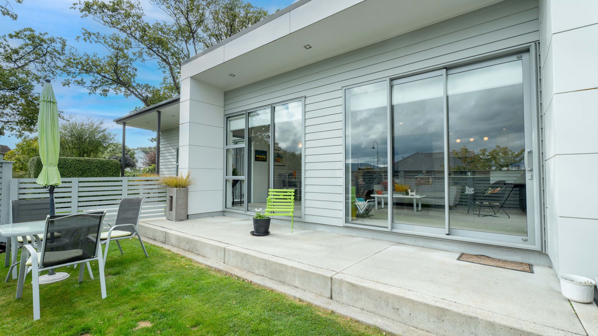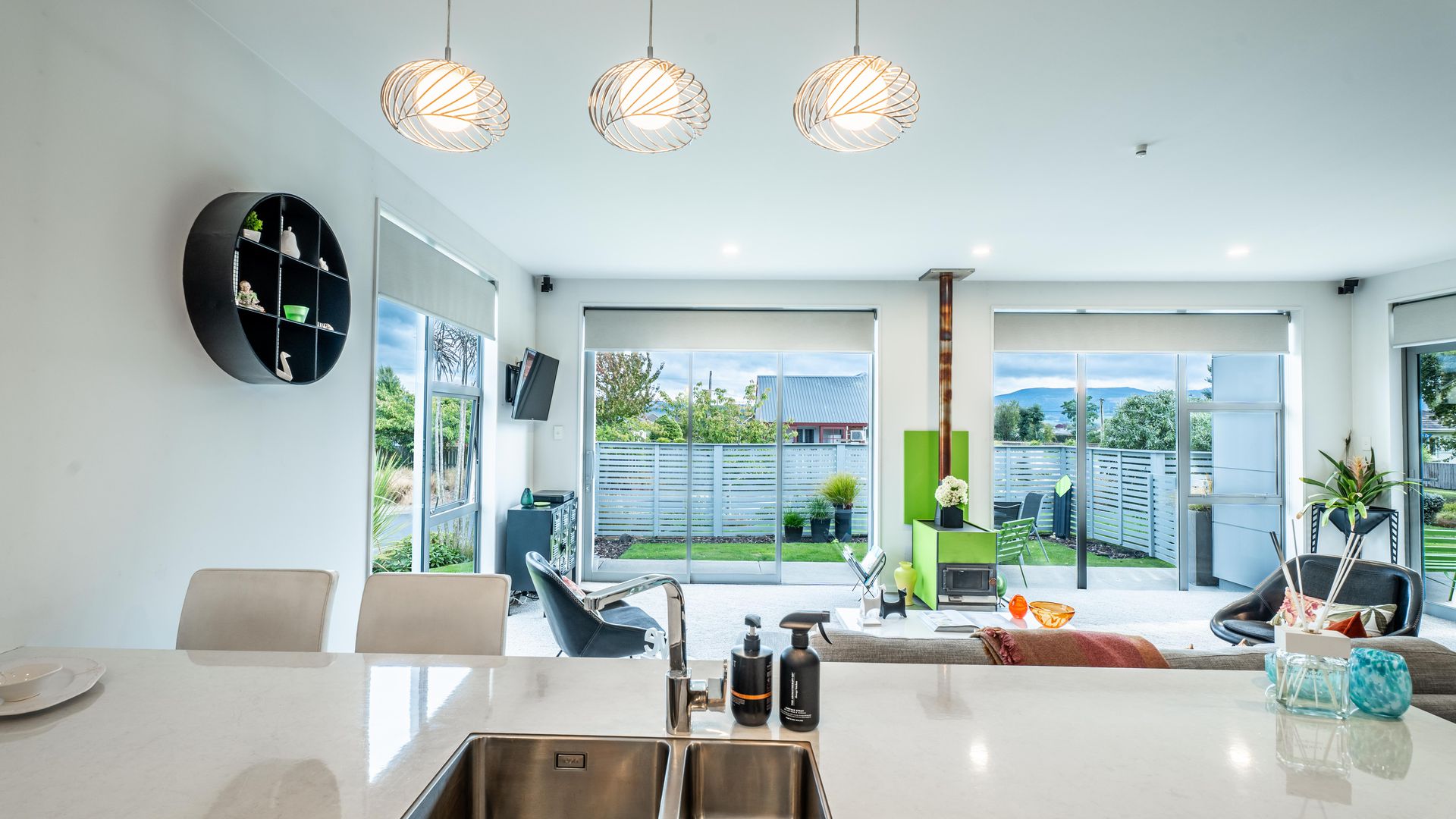 You will surely love the contemporary design and effortless living in this beautifully presented home. Situated in a highly sought-after, established Mosgiel subdivision, this 2010s-built residence offers the sleek aesthetics of a modern build with the privacy and "settled-in" feel that only a mature neighborhood can provide. The Heart of the Home Step into an expansive living area bathed in natural light. The stylish kitchen is a chef’s dream, featuring generous cabinetry and the ultimate entertainer’s secret: a spacious scullery to keep prep work out of sight. The living room is anchored by a stunning feature fireplace, framed by a vibrant green splashback that mirrors the exterior accents. It’s a bold, fun design choice that brings unique warmth and personality to the home's modern lines.