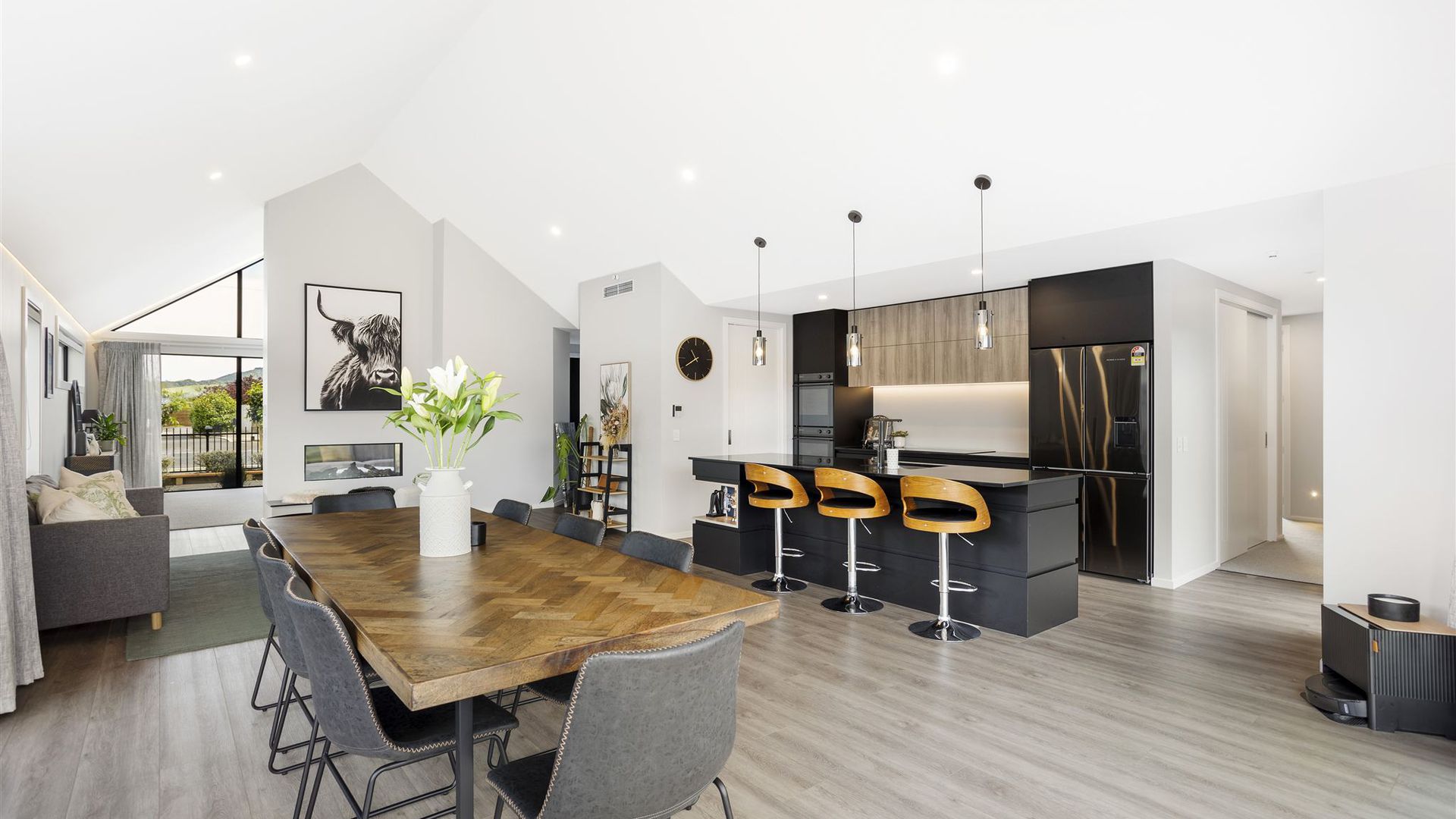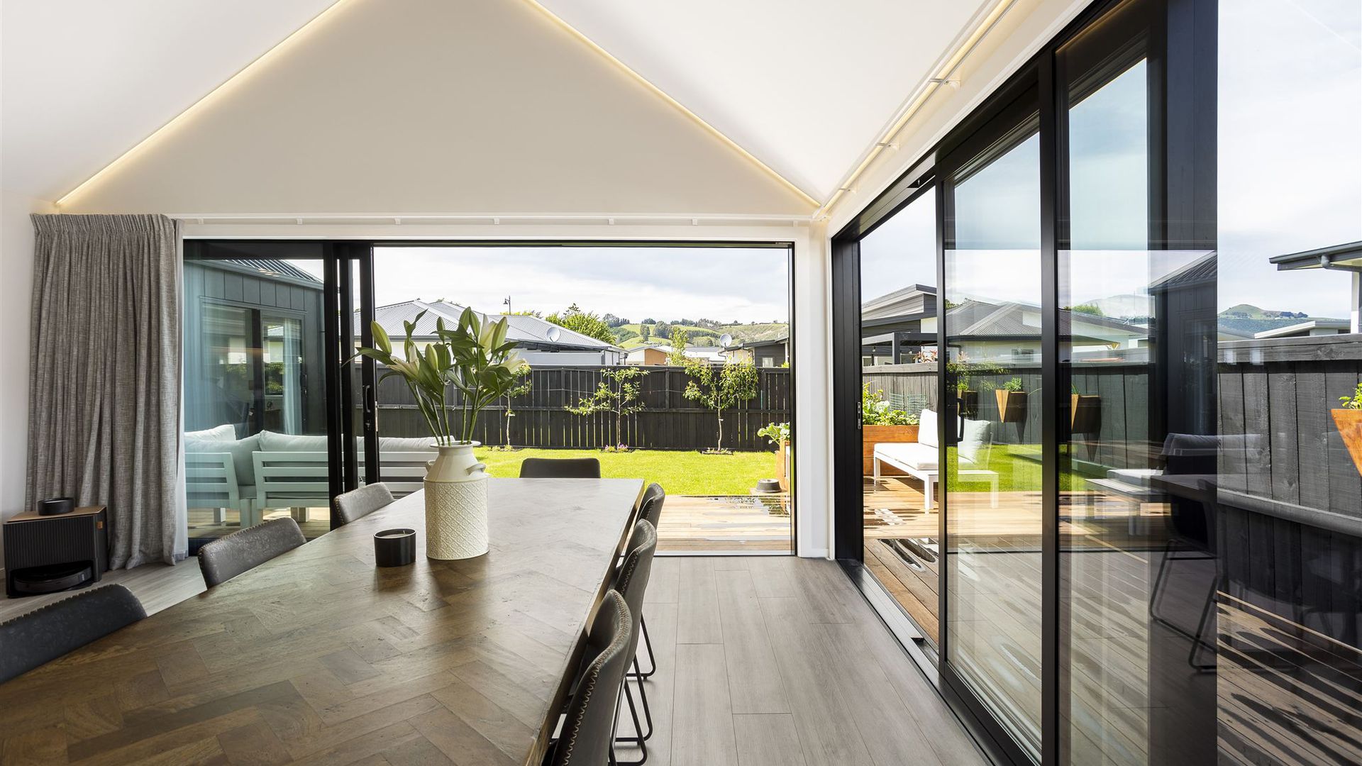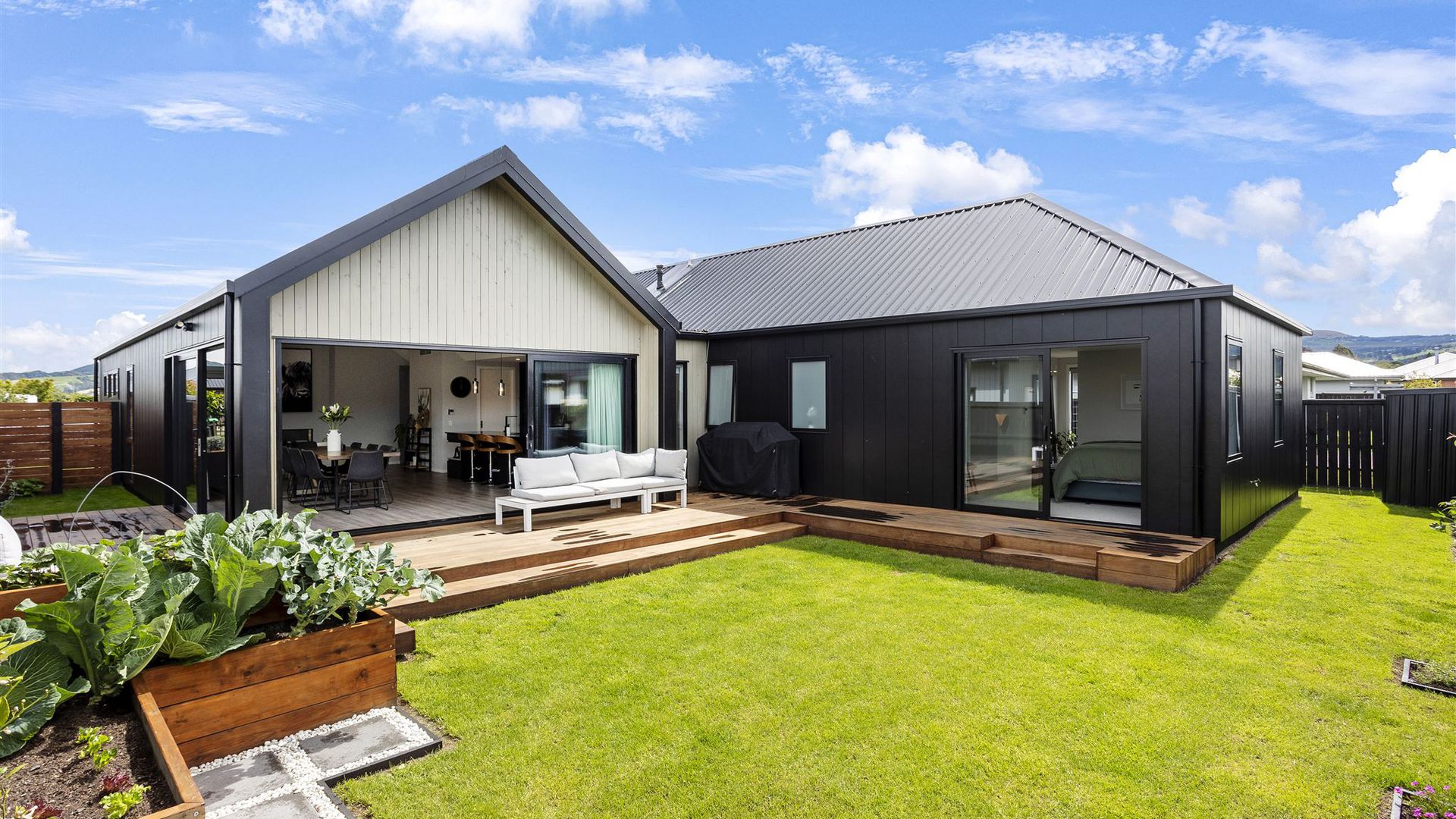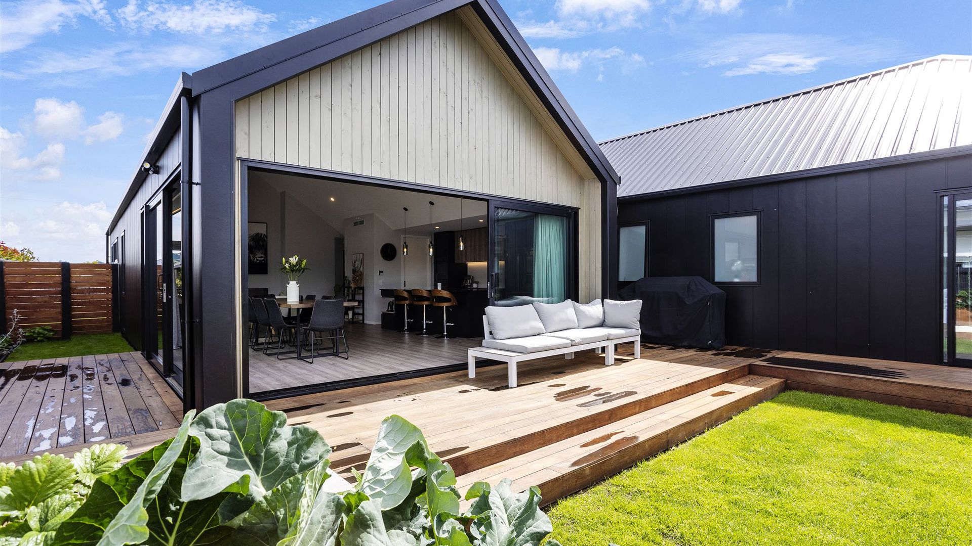 This architecturally striking home in sought-after Mosgiel is a rare opportunity for buyers wanting style, comfort, and clever design in one beautifully executed package. Step inside and be welcomed by soaring ceilings and a spacious open-plan living, dining, and kitchen area. The sleek, contemporary kitchen features a large island, high-end finishes, and a walk-in pantry—ideal for entertainers and busy households alike. Two sets of stacking doors open seamlessly to the sun-soaked deck and BBQ area, perfect for summer gatherings and easy indoor–outdoor living.