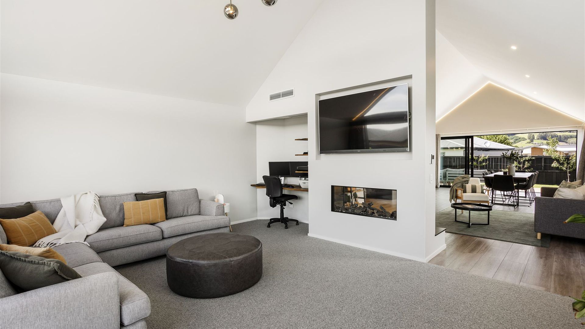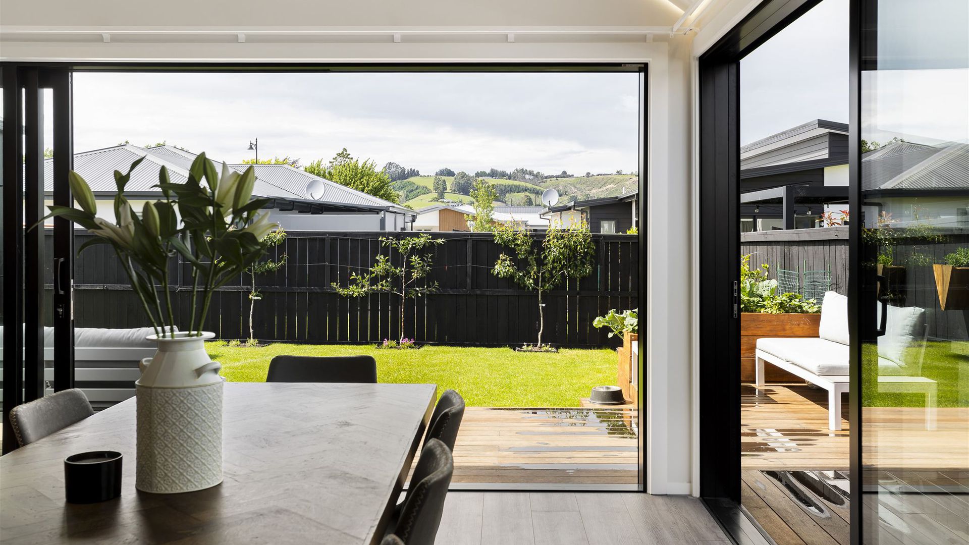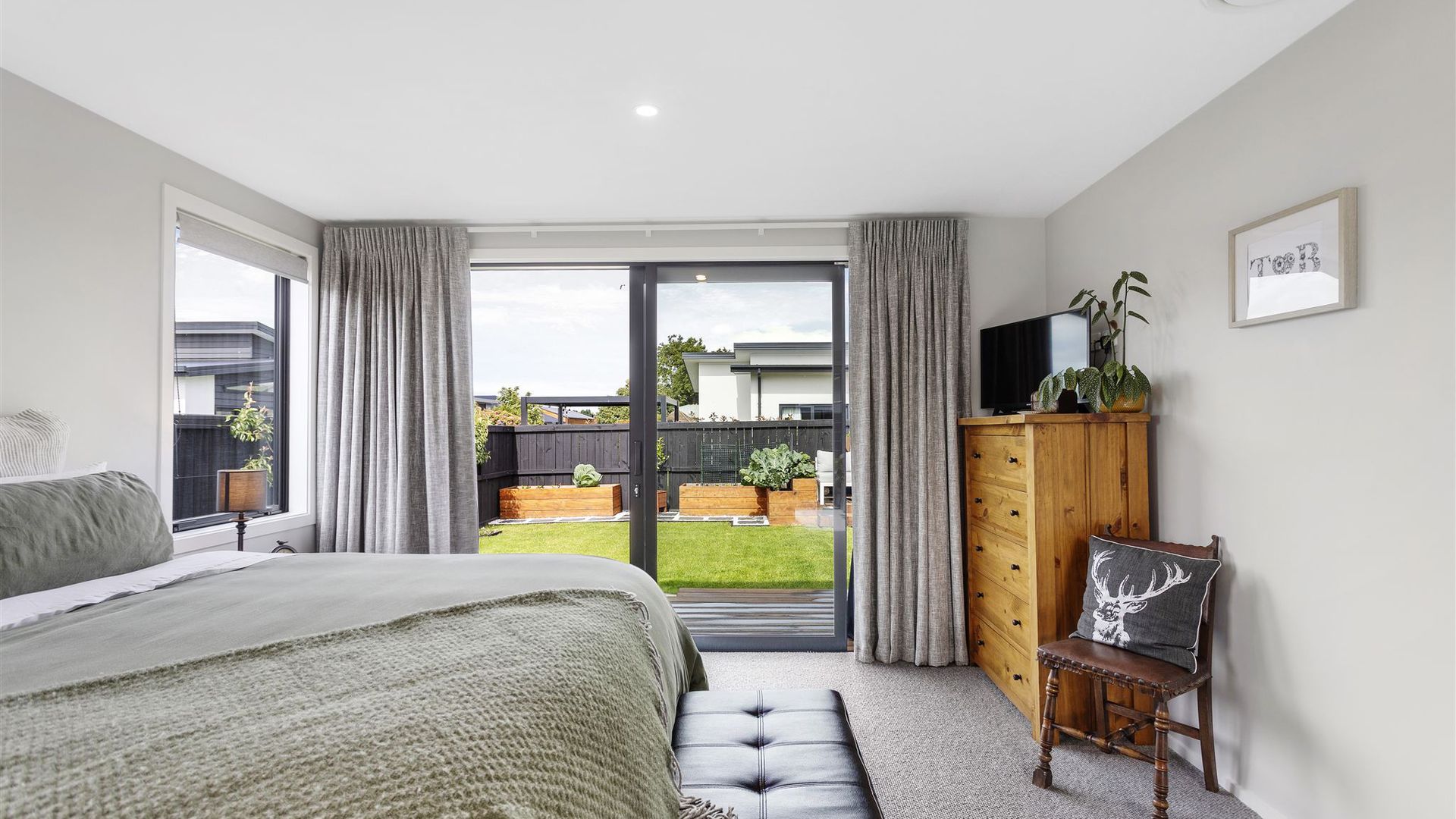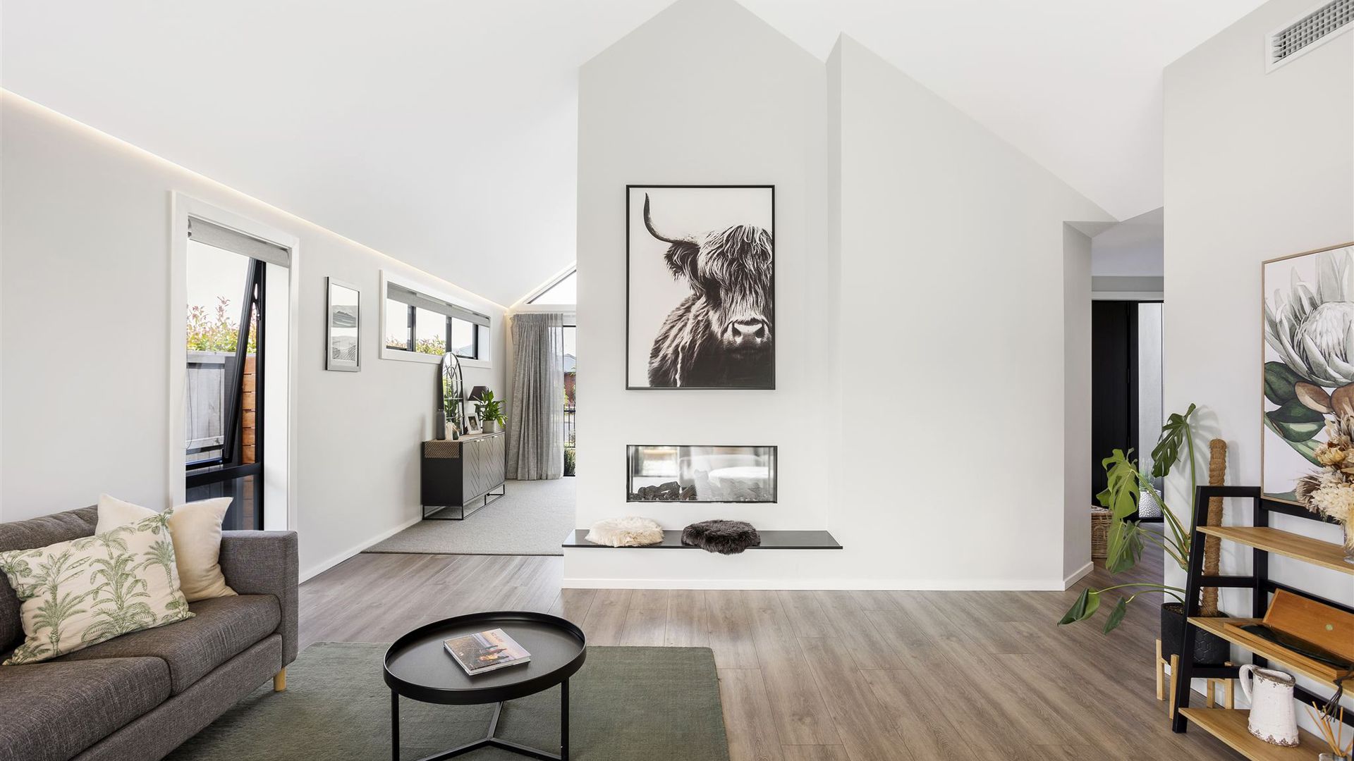 This architecturally striking home in sought-after Mosgiel is a rare opportunity for buyers wanting style, comfort, and clever design in one beautifully executed package. Step inside and be welcomed by soaring ceilings and a spacious open-plan living, dining, and kitchen area. The sleek, contemporary kitchen features a large island, high-end finishes, and a walk-in pantry—ideal for entertainers and busy households alike. Two sets of stacking doors open seamlessly to the sun-soaked deck and BBQ area, perfect for summer gatherings and easy indoor–outdoor living.