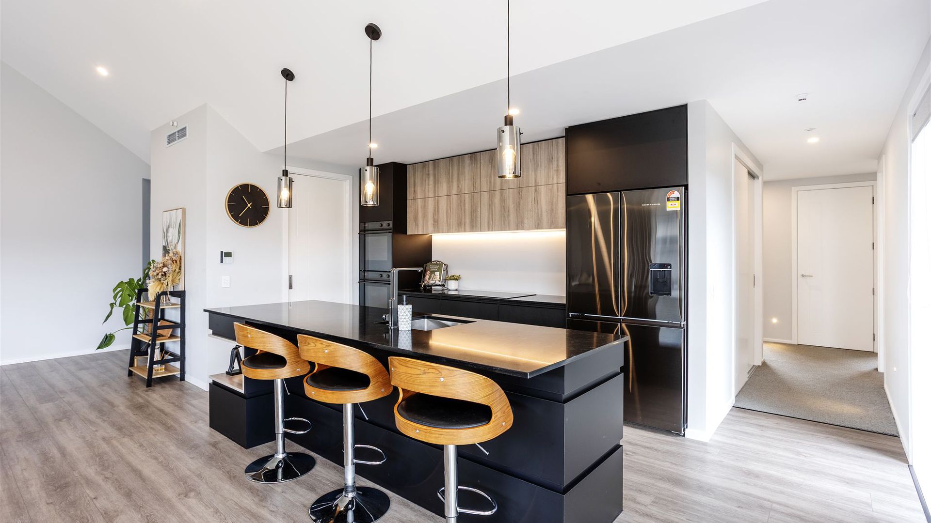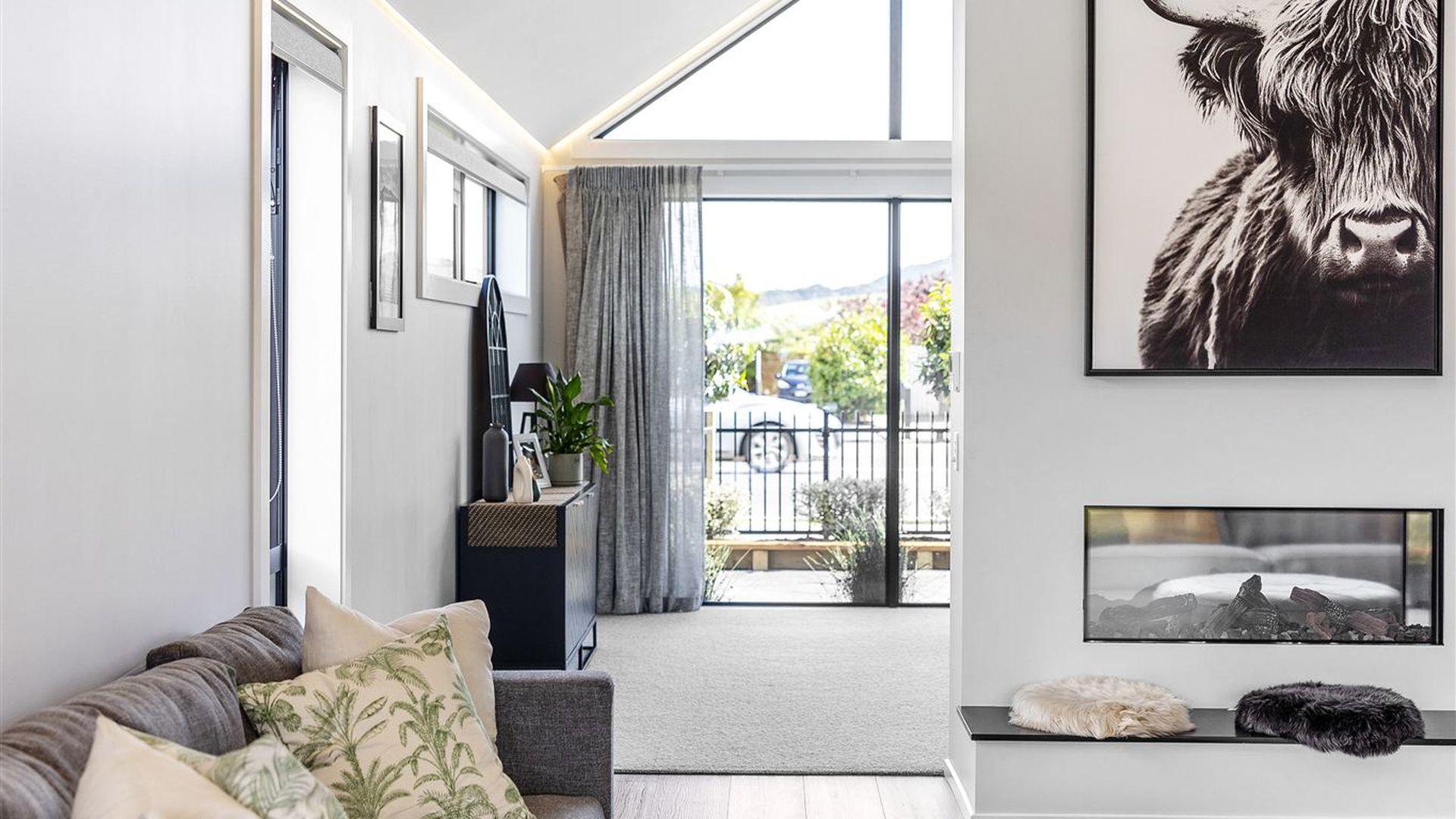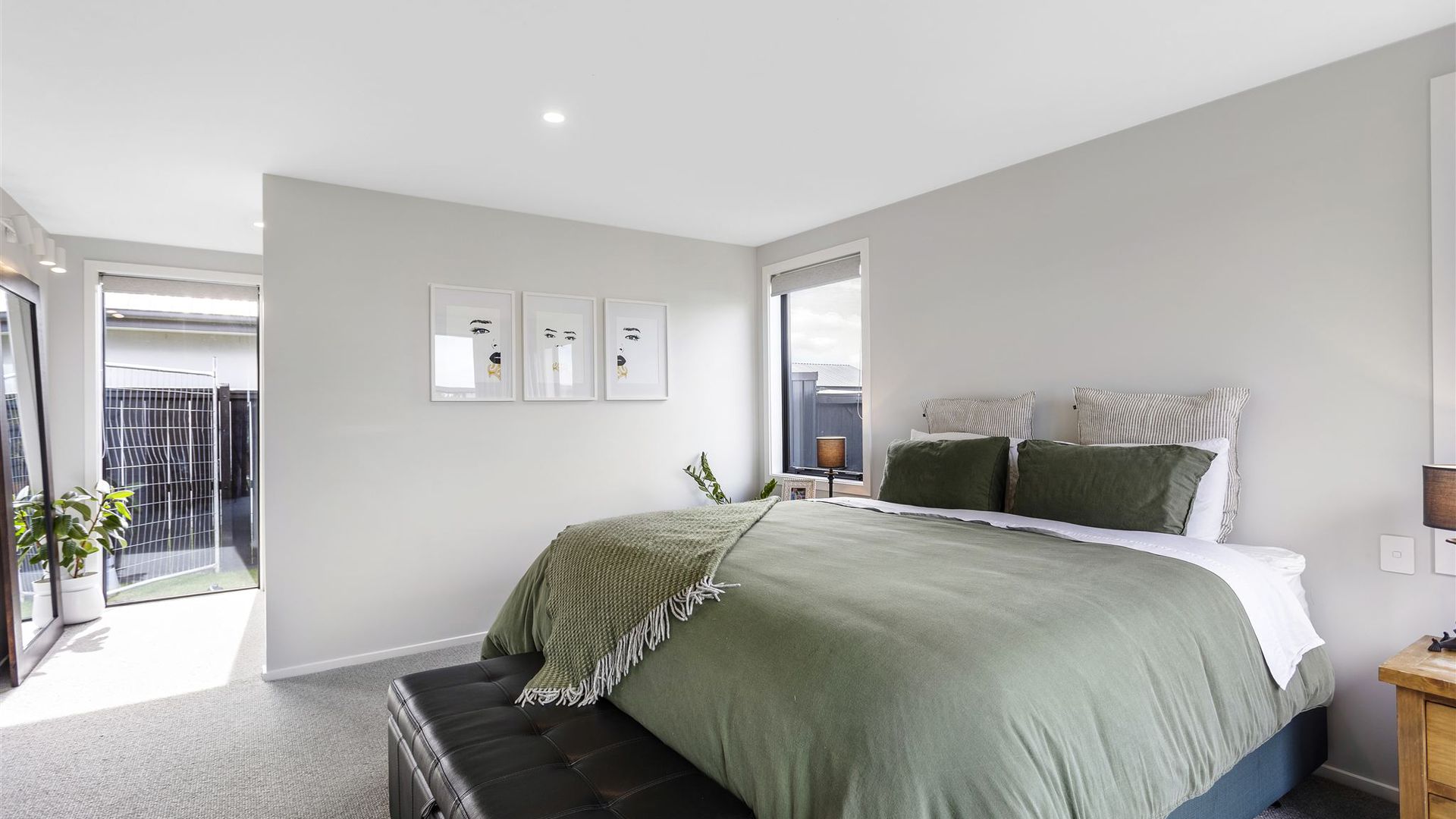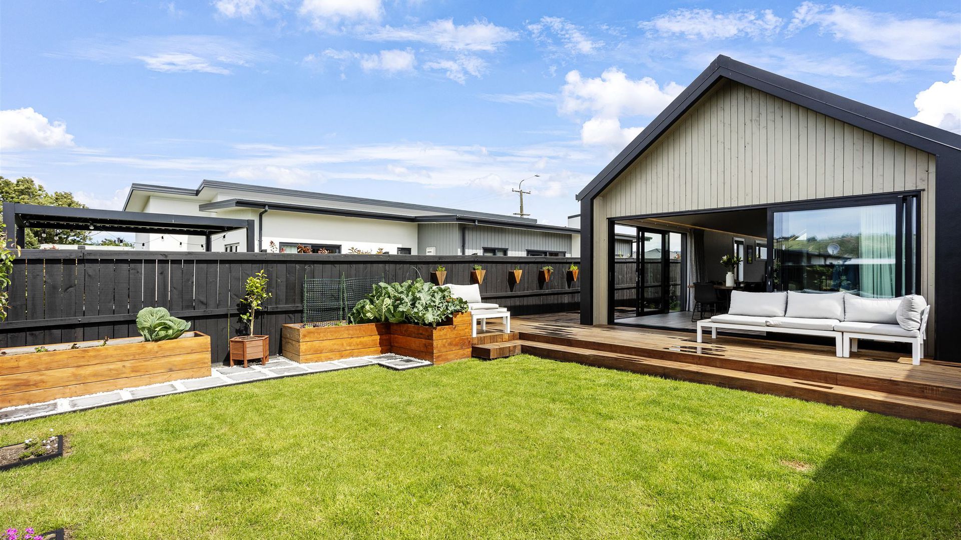 This architecturally striking home in sought-after Mosgiel is a rare opportunity for buyers wanting style, comfort, and clever design in one beautifully executed package. Step inside and be welcomed by soaring ceilings and a spacious open-plan living, dining, and kitchen area. The sleek, contemporary kitchen features a large island, high-end finishes, and a walk-in pantry—ideal for entertainers and busy households alike. Two sets of stacking doors open seamlessly to the sun-soaked deck and BBQ area, perfect for summer gatherings and easy indoor–outdoor living.