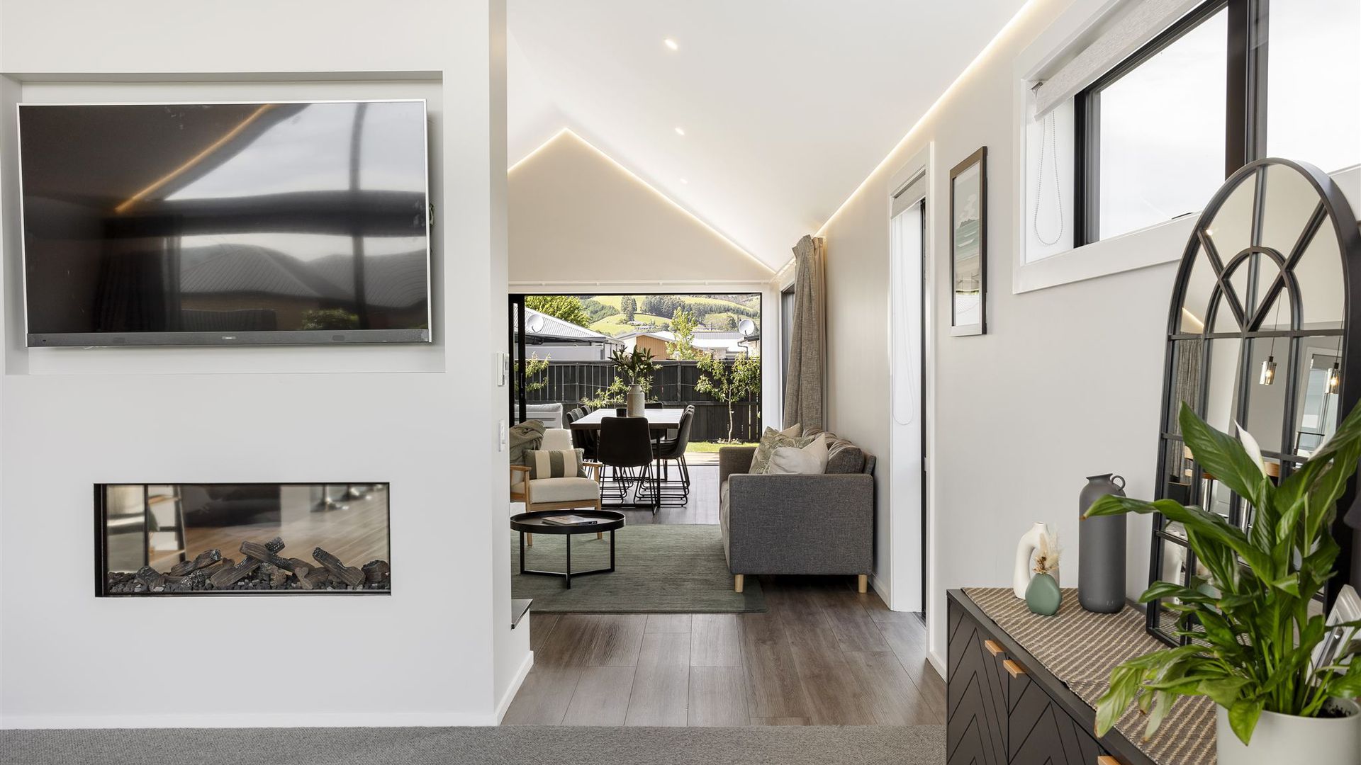 Floor-to-ceiling glazing floods the main living area with natural light, while a stylish dual-sided gas fire separates the lounge from the dining/kitchen zone—offering ambience and warmth on both sides. The clever layout continues through the home. From the entry, head left to the internal access double garage, or right into the main living areas. Beyond the kitchen lies a separate hallway housing two double bedrooms that enjoy beautiful morning sun, plus the family bathroom—a standout space with a free-standing bath, rain shower, skylight, and elegant finishes. At the opposite end of the hall sits the master suite. Generously sized, it includes a walk-in wardrobe, sliding doors to the deck and backyard, and a well-designed ensuite featuring his-and-hers basins and two separate showers—no more queuing. A practical design touch places the toilet between the ensuite and hallway with cavity sliders, allowing easy access for family or guests when needed. Outdoors, the low-maintenance section is beautifully presented with a lush lawn, established vegetable garden, and plenty of room for pets to play. The location is convenient and family-friendly, close to Mosgiel amenities, schools, parks, and transport. A unique, stylish, and incredibly functional home—don’t miss your chance to make it yours. *Prior offers may be considered*