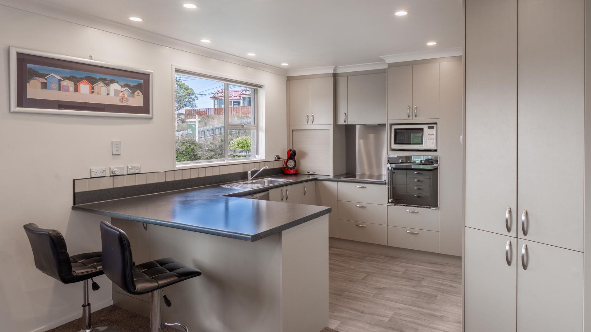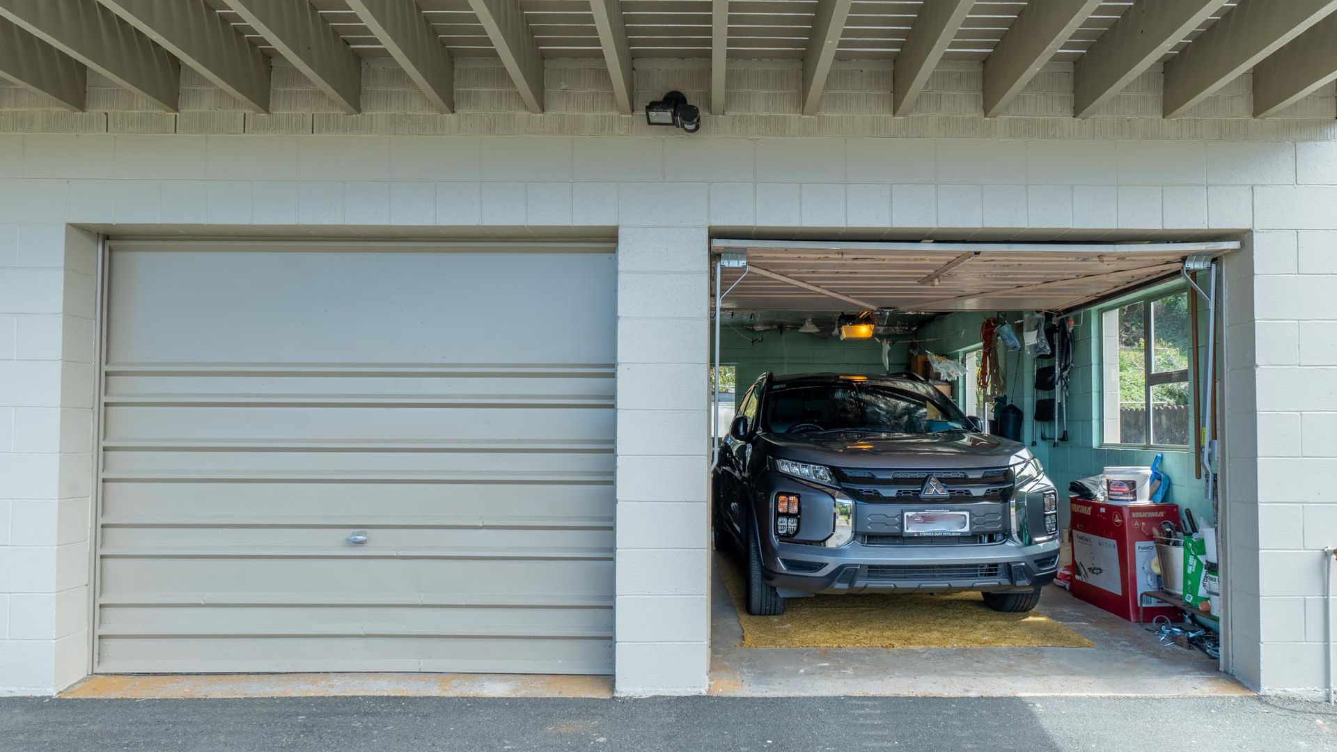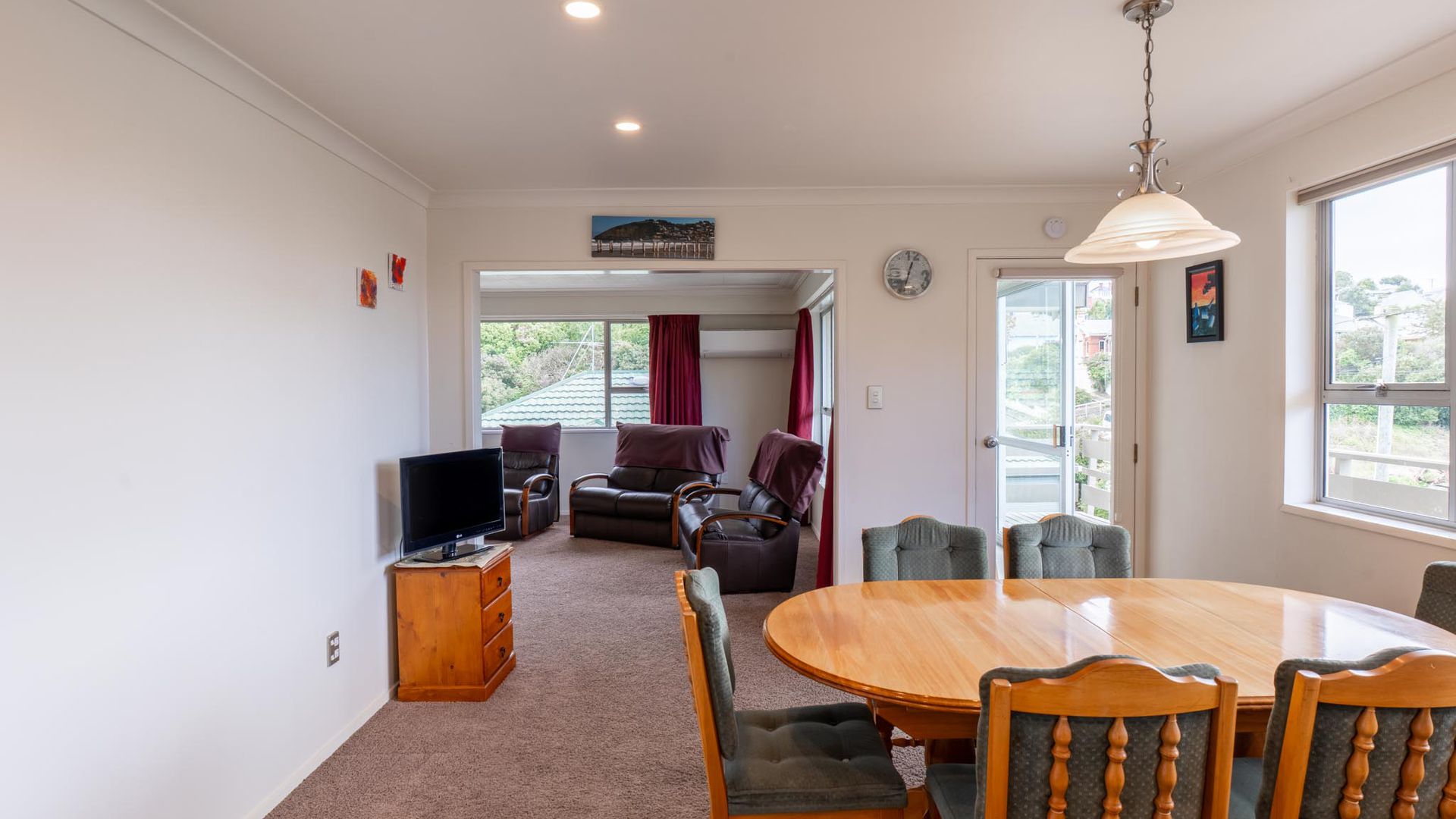 The lower level provides excellent functionality, featuring a double garage with integrated laundry and a superb workshop — ideal for tools, toys, or weekend projects. From the foyer, the home leads to a bedroom with good storage, a modernised bathroom with shower and separate toilet, and a large utility room that has previously served as either a bedroom or games room, offering endless configuration options. Upstairs, the sun-soaked open-plan living area enjoys seamless flow to the kitchen, which was modernised in the early 2000s and connects easily to the dining space. From here, step into the conservatory and out onto the deck, where elevated ocean views provide the perfect backdrop for relaxed entertaining.
