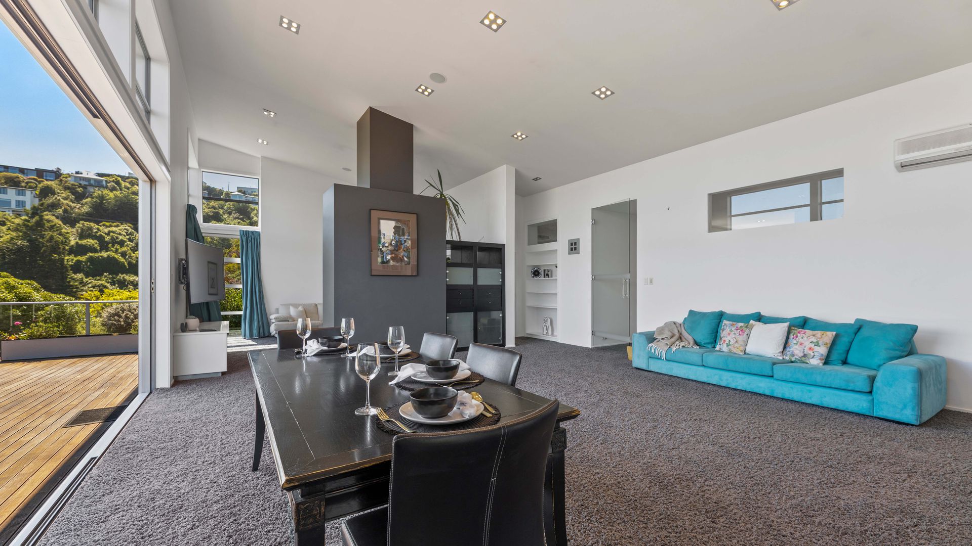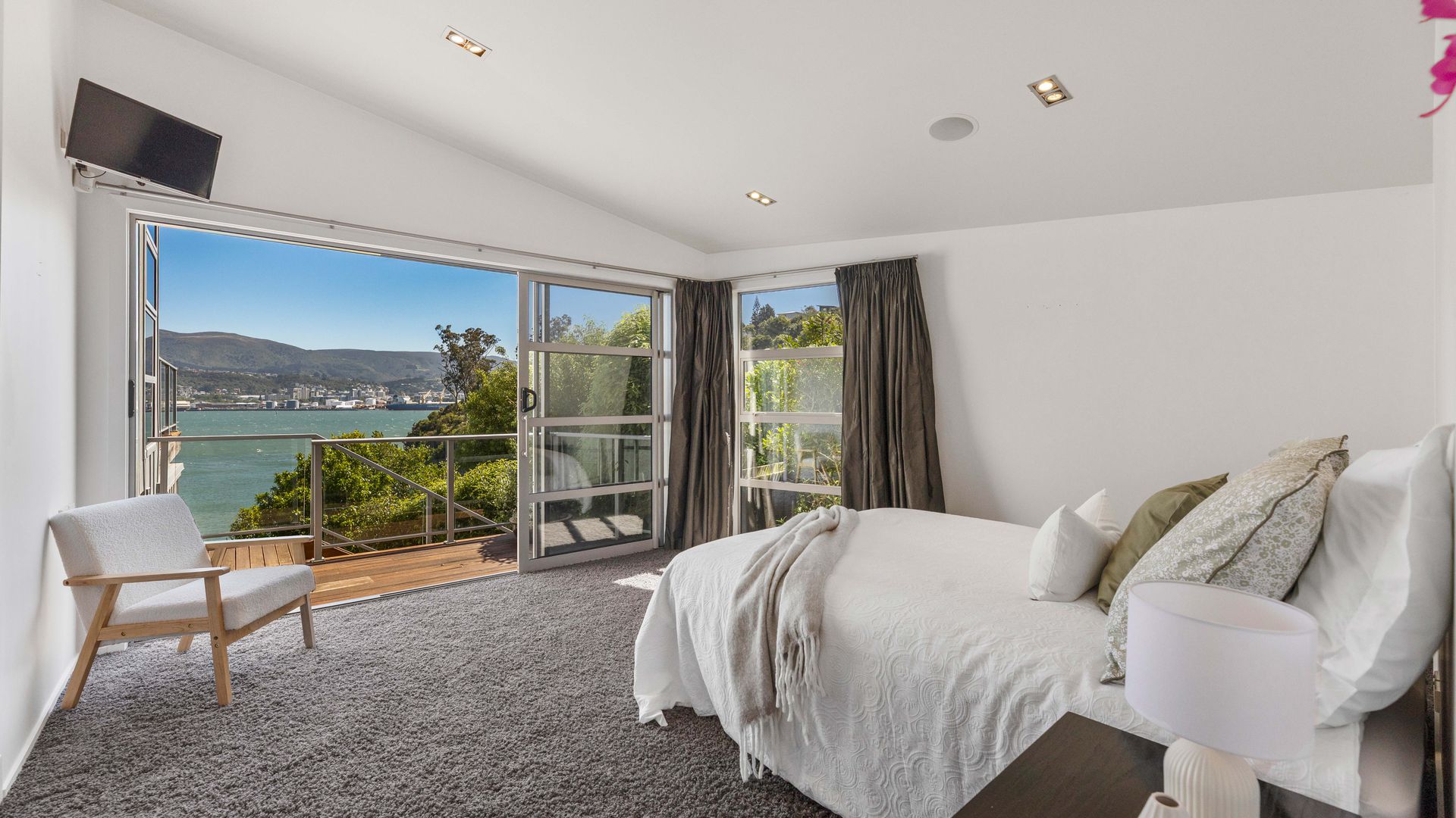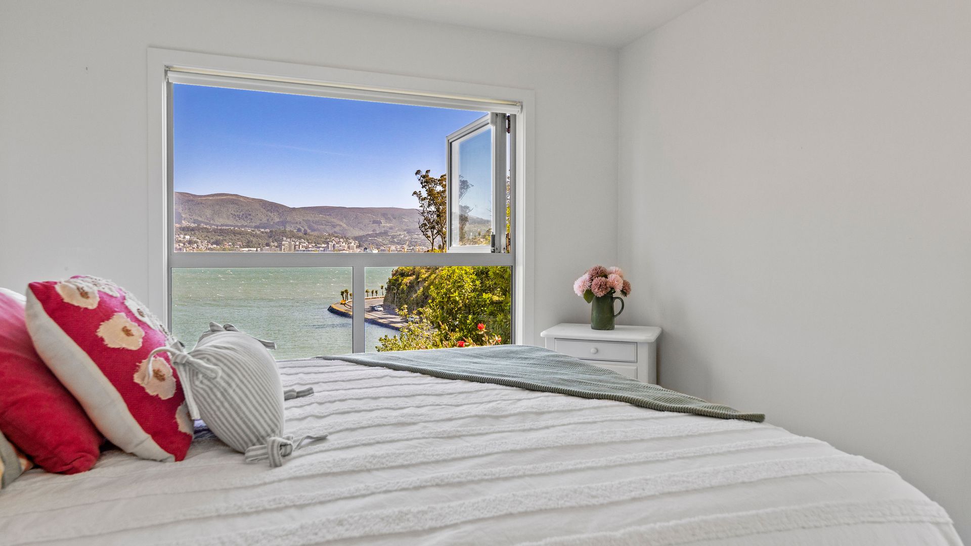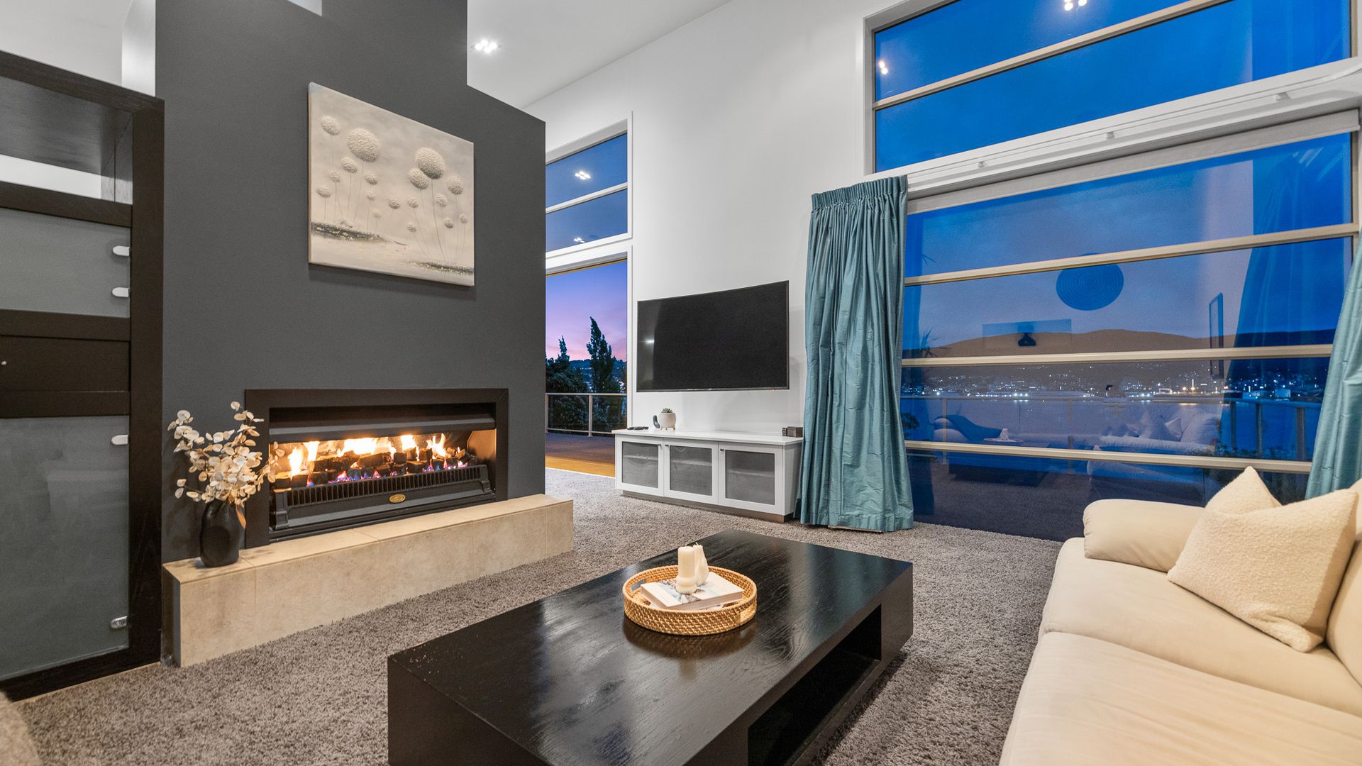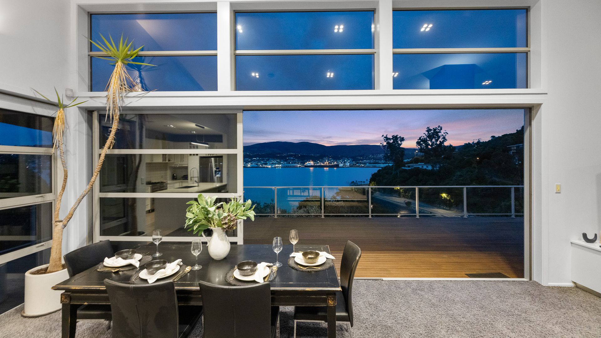 This multi-level architectural home combines modern luxury with a tranquil, retreat-like atmosphere, offering both privacy and grandeur in equal measure. Thoughtfully positioned to harness all-day sun and benefit from the natural shelter created by the contour of the bay, the home feels warm, calm, and deeply connected to its surroundings. Inside, expansive open-plan living forms the heart of the home. The elevated ceilings create a sense of spaciousness, while large sliding doors and full-height windows frame ever-changing harbour vistas. The kitchen is both beautiful and functional, and a second living area offers a relaxed space for quiet evenings, enhanced by the warmth of a gas fire. With sunlight pouring in throughout the day and the bay’s natural landform providing shelter, every space feels inviting year-round.