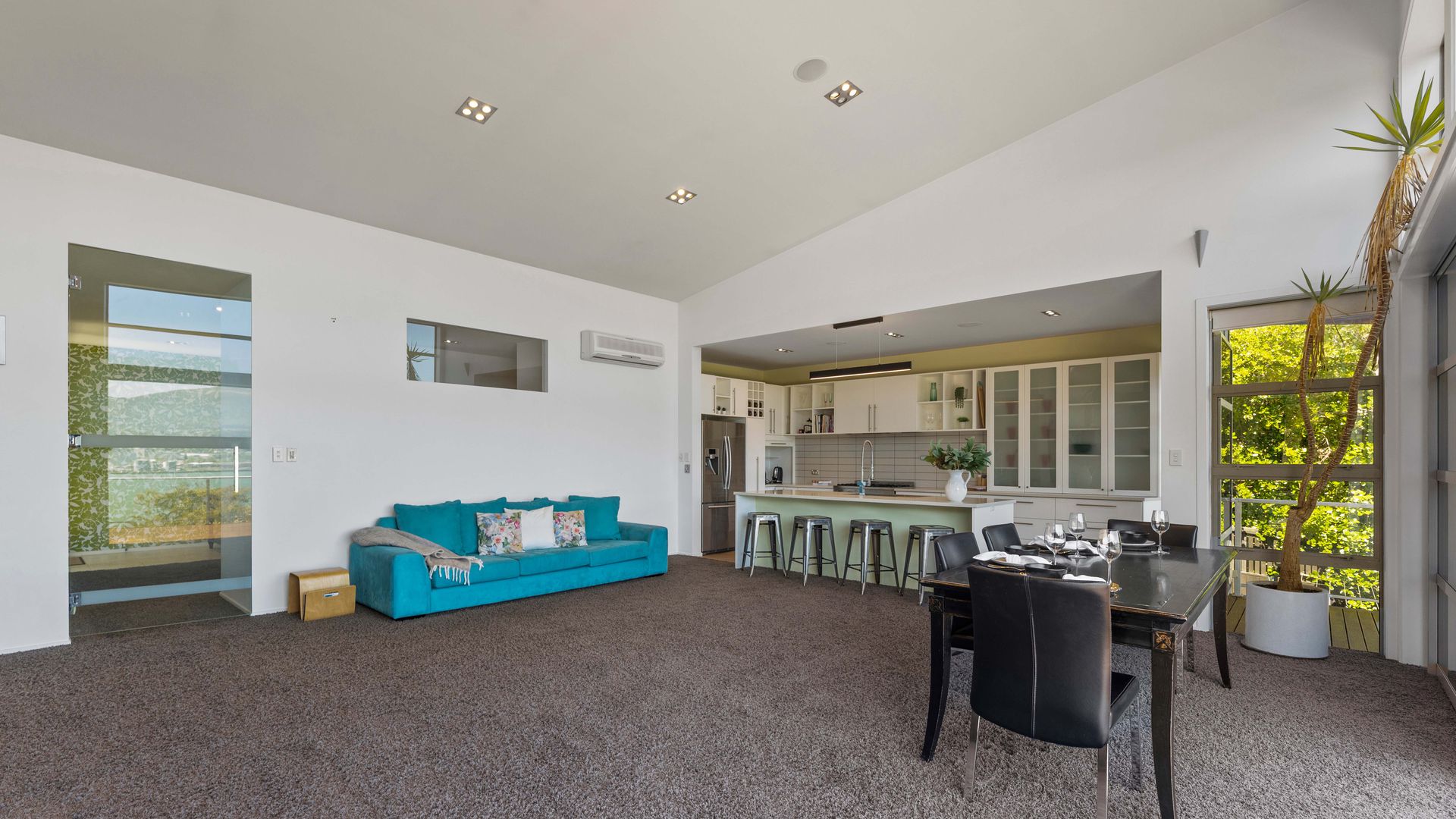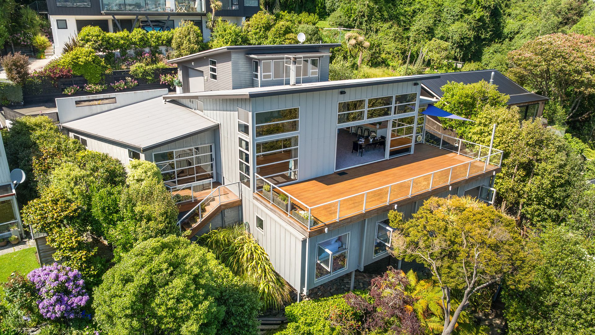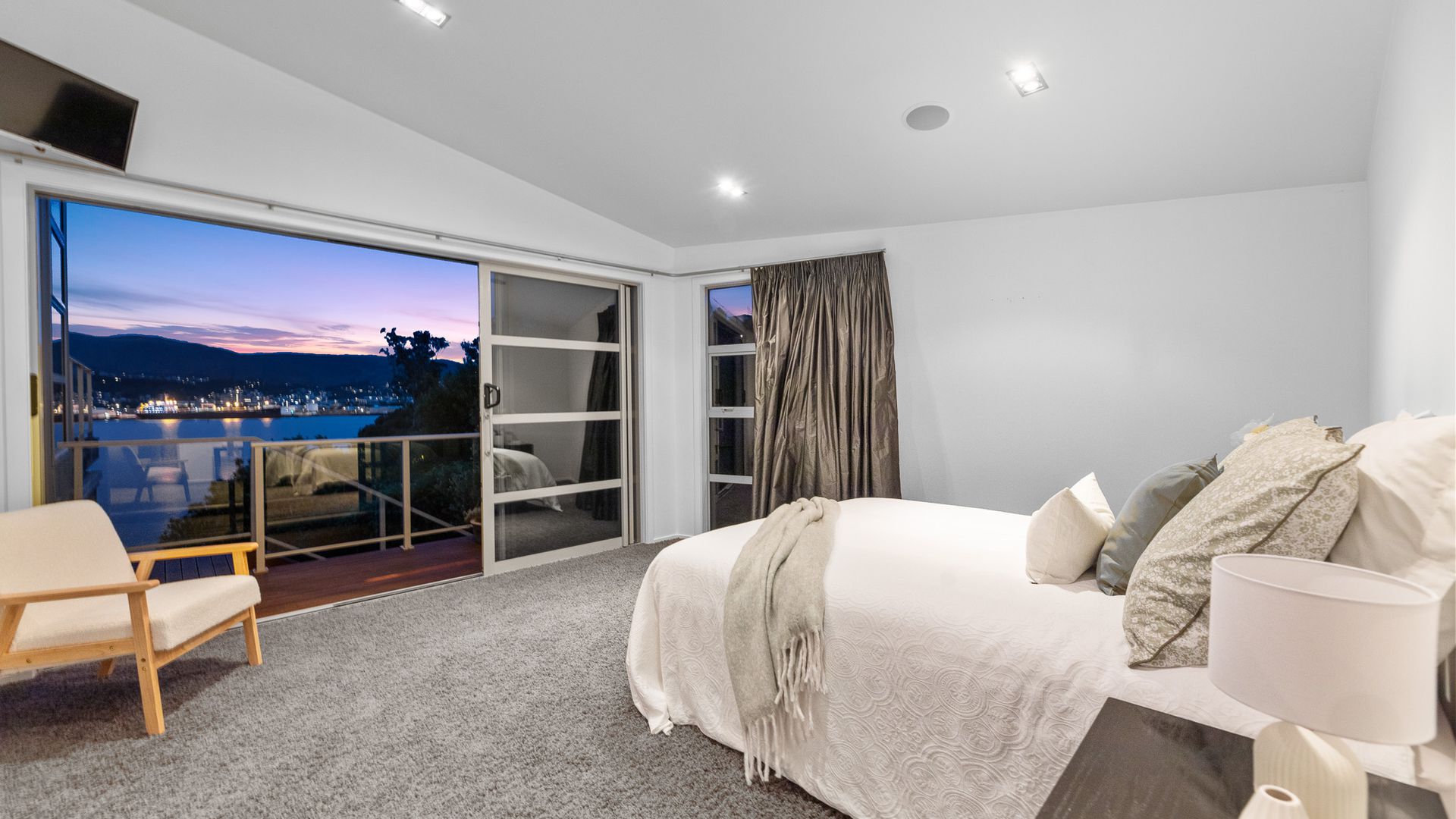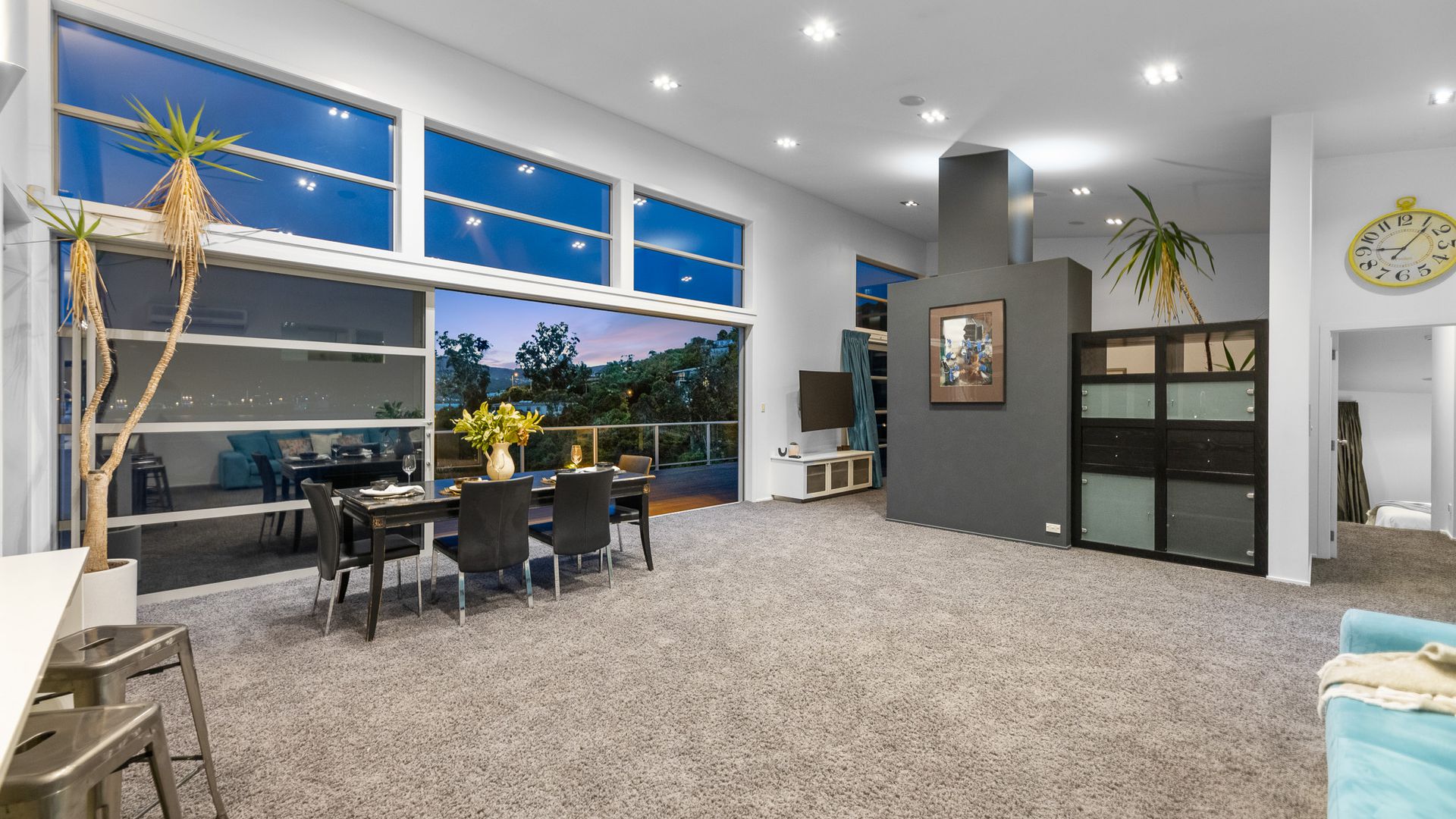 This multi-level architectural home combines modern luxury with a tranquil, retreat-like atmosphere, offering both privacy and grandeur in equal measure. Thoughtfully positioned to harness all-day sun and benefit from the natural shelter created by the contour of the bay, the home feels warm, calm, and deeply connected to its surroundings. Inside, expansive open-plan living forms the heart of the home. The elevated ceilings create a sense of spaciousness, while large sliding doors and full-height windows frame ever-changing harbour vistas. The kitchen is both beautiful and functional, and a second living area offers a relaxed space for quiet evenings, enhanced by the warmth of a gas fire. With sunlight pouring in throughout the day and the bay’s natural landform providing shelter, every space feels inviting year-round.